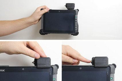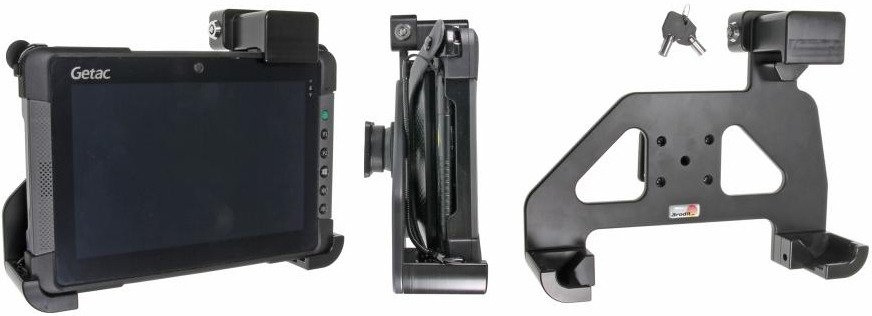 - 539706 - Brodit uchwyt pasywny z głowicą obrotową oraz z blokadą sprężynową na kluczyk do Getac T800. Pasuje do urządzeń z lub bez paska na rękę. Pasuje do urządzeń z baterią standardową oraz baterią SnapBack.