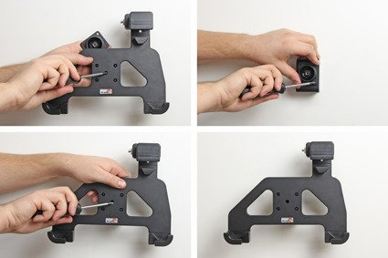 Uchwyt wykonany jest z bardzo mocnego i wytrzymałego tworzywa ABS. Zamontuj go do dowolnej płaskiej powierzchni, w samochodzie ciężarowym, w magazynie, na wózku widłowym itp. Uchwyt posiada w swojej tylnej części standardowe otwory AMPS i VESA. Gdy urządzenie znajduje się w uchwycie, jest pełny dostęp do kamery, wszystkich przycisków funkcyjnych i portów elektronicznych.