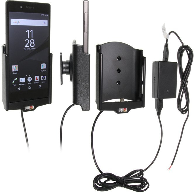 - 513811 - uchwyt aktywny do instalacji na stałe z głowicą obrotową, adapterem Molex oraz 2A ładowarką do Sony Xperia Z5.
