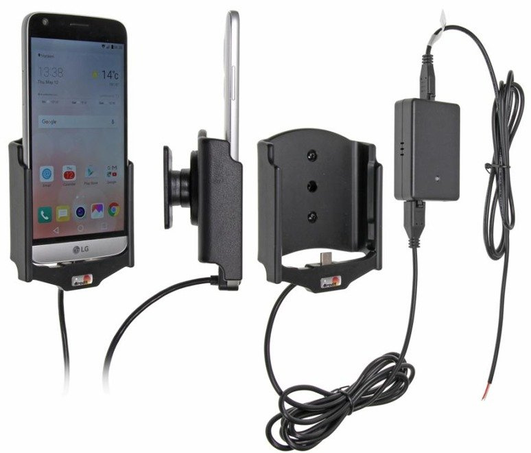 - 513872 - uchwyt aktywny do instalacji na stałe z głowicą obrotową, adapterem Molex oraz 2A ładowarką do LG G5.