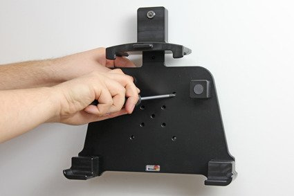 Uchwyt jest również idealnym rozwiązaniem do zastosowania w sklepach, na wystawach lub w każdym innym miejscu, w którym chcesz używać tabletu przy jednoczesnym zabezpieczeniu go przed łatwym wyjęciem z uchwytu. Jest on wyposażony w blokadę i w celu usunięcia tabletu z uchwytu trzeba użyć klucza (zestaw zawiera dwa klucze).