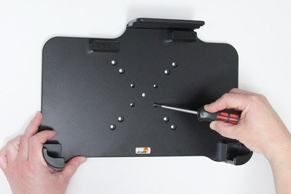 Uchwyt wyposażony jest w głowicę obrotową, która umożliwia jego regulację w różnych kierunkach w celu np. uniknięcia odbicia światła na ekranie. Możesz regulować ustawienie uchwytu o 22° w każdym kierunku. Uchwyt umożliwia jednocześnie ustawienie tabletu w pionie lub w poziomie. Zamontuj swój uchwyt do tabletu na ProClip’ie samochodowym lub na specjalnym uchwycie montażowym do zagłówka.