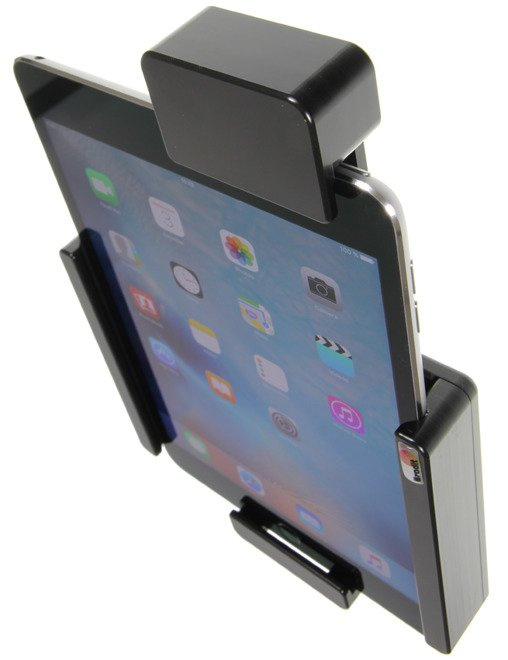 Uchwyt pasywny do tabletów gołych jak i w futerale regulowany w zakresie: 180-210 mm (szer.), 115-138 mm (wysokość), z wbudowaną blokadą sprężynową