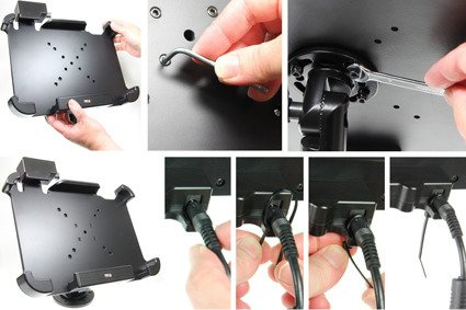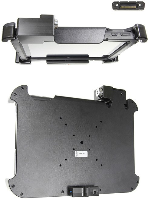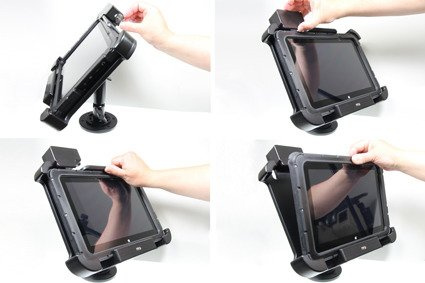 Uchwyt wykonany jest z bardzo mocnego i wytrzymałego tworzywa ABS. Zamontuj go do dowolnej płaskiej powierzchni, w samochodzie ciężarowym, w magazynie, na wózku widłowym itp. Uchwyt posiada w swojej tylnej części standardowe otwory AMPS i VESA. Gdy urządzenie znajduje się w uchwycie, jest pełny dostęp do kamery, wszystkich przycisków funkcyjnych i portów elektronicznych.
