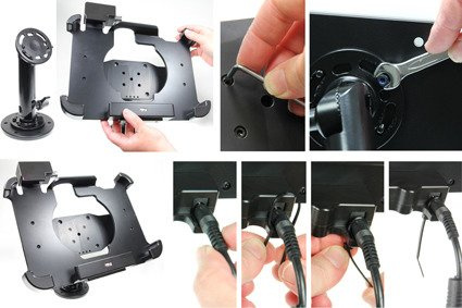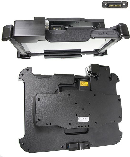 Uchwyt wykonany jest z bardzo mocnego i wytrzymałego tworzywa ABS. Zamontuj go do dowolnej płaskiej powierzchni, w samochodzie ciężarowym, w magazynie, na wózku widłowym itp. Uchwyt posiada w swojej tylnej części standardowe otwory AMPS i VESA. Gdy urządzenie znajduje się w uchwycie, jest pełny dostęp do kamery, wszystkich przycisków funkcyjnych i portów elektronicznych.