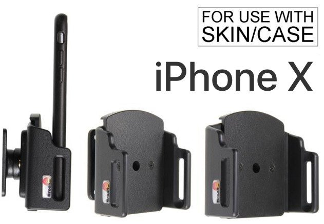 - 511666 - uchwyt regulowany, pasywny z głowicą obrotową do Apple iPhone X w futerale lub obudowie o wymiarach: 62-77 mm (szer.), 2-10 mm (grubość).