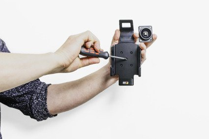 Uchwyt wyposażony jest w głowicę obrotową, która umożliwia jego regulację w różnych kierunkach w celu np. uniknięcia odbicia światła na ekranie. Możesz regulować ustawienie uchwytu o 22° w każdym kierunku. Uchwyt umożliwia jednocześnie ustawienie terminala w pionie lub w poziomie. Zamontuj swój uchwyt do terminala na ProClip’ie samochodowym.