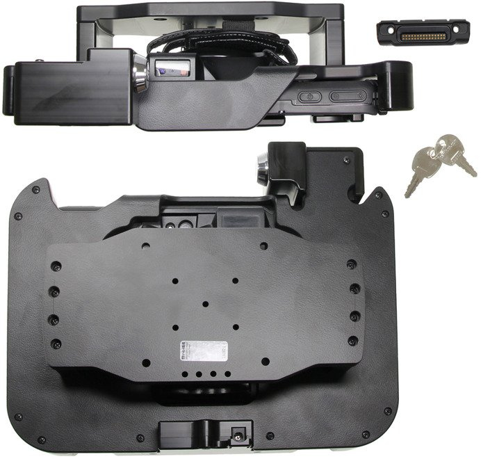 Uchwyt wykonany jest z bardzo mocnego i wytrzymałego tworzywa ABS. Zamontuj go do dowolnej płaskiej powierzchni, w samochodzie ciężarowym, w magazynie, na wózku widłowym itp. Uchwyt posiada w swojej tylnej części standardowe otwory AMPS i VESA. Gdy urządzenie znajduje się w uchwycie, jest pełny dostęp do kamery, wszystkich przycisków funkcyjnych i portów elektronicznych.