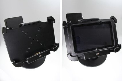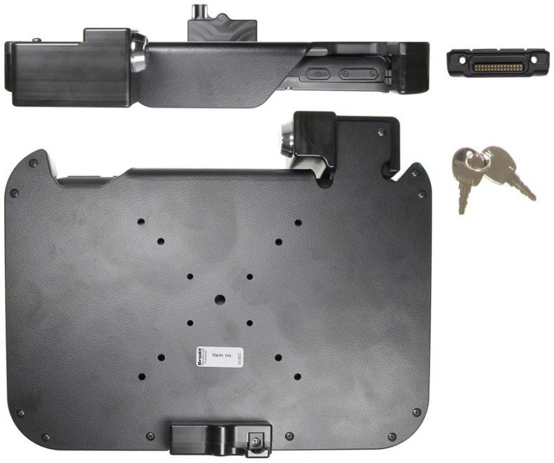 Uchwyt wykonany jest z bardzo mocnego i wytrzymałego tworzywa ABS. Zamontuj go do dowolnej płaskiej powierzchni, w samochodzie ciężarowym, w magazynie, na wózku widłowym itp. Uchwyt posiada w swojej tylnej części standardowe otwory AMPS i VESA. Gdy urządzenie znajduje się w uchwycie, jest pełny dostęp do kamery, wszystkich przycisków funkcyjnych i portów elektronicznych.