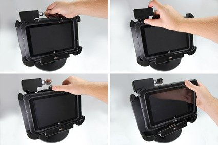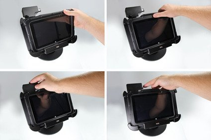 Uchwyt jest również idealnym rozwiązaniem do zastosowania w sklepach, na wystawach lub w każdym innym miejscu, w którym chcesz używać tabletu przy jednoczesnym zabezpieczeniu go przed łatwym wyjęciem z uchwytu. Jest on wyposażony w blokadę i w celu usunięcia tabletu z uchwytu trzeba użyć klucza (zestaw zawiera dwa klucze).