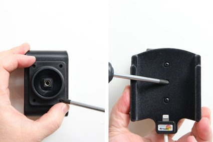 - 714009 - uchwyt z głowicą obrotową do Apple iPhone 8 z możliwością wpięcia oryginalnego kabla lightning USB.