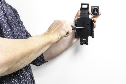 Uchwyt wyposażony jest w głowicę obrotową, która umożliwia jego regulację w różnych kierunkach w celu np. uniknięcia odbicia światła na ekranie. Możesz regulować ustawienie uchwytu o 22° w każdym kierunku. Uchwyt umożliwia jednocześnie ustawienie terminala w pionie lub w poziomie. Zamontuj swój uchwyt do terminala na ProClip’ie samochodowym.
