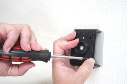 - Umieścić płytkę montażową głowicy obrotowej w żądanym położeniu. Następnie przykręć ją do wybranego miejsca śrubkami, które znajdują się w komplecie.
