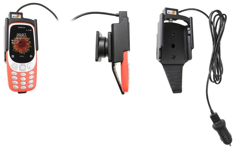 - 721043 - uchwyt z ładowarką samochodową/kablem USB oraz głowicą obrotową do Nokia 3310 4G, 3G (2018).