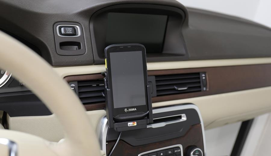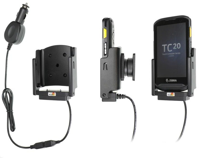- 712019 - uchwyt z ładowarką samochodową z prostym kablem (120 cm) oraz z głowicą obrotową do Zebra TC20/TC25.