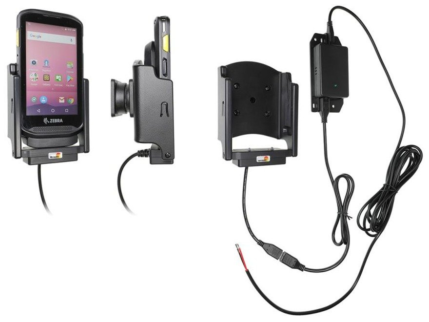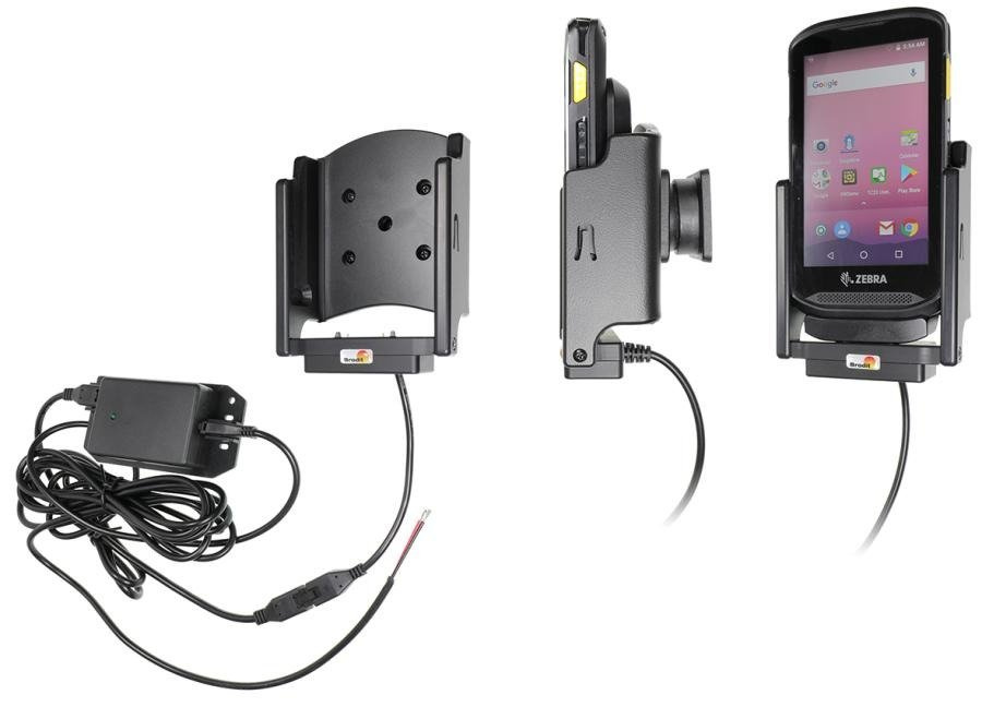 • 713029 - Brodit uchwyt aktywny do instalacji na stałe z głowicą obrotową, adapterem Molex oraz 2A ładowarką do Zebra TC20/TC25 wyposażonych w powerbank .