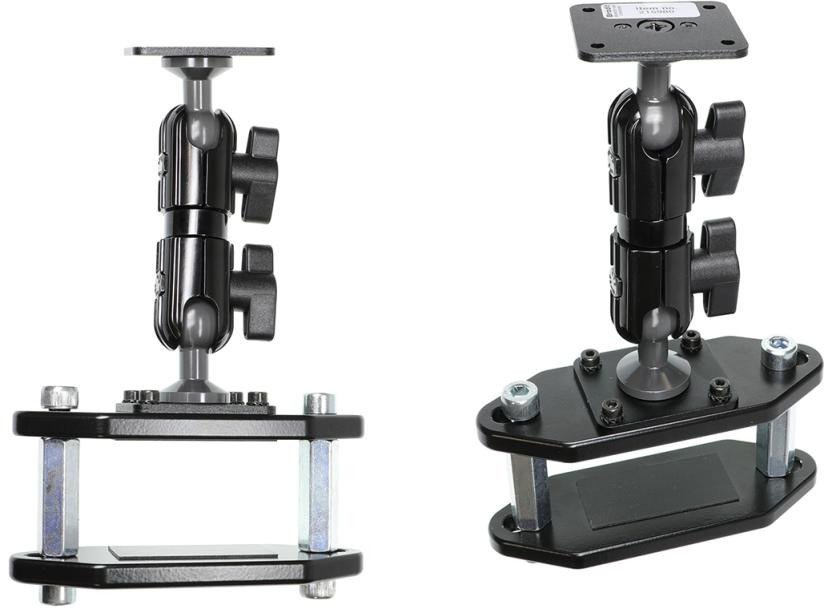 Baza montażowa na przegubach kulowych z kwadratową podstawą o wymiarach 50x42mm z wstępnie nawierconymi otworami w systemie AMPs montowana na obejmie zaciskowej. Baza dedykowana jest do wózków widłowych. Idealnie nadaje się do montowania na niej wszelkiej elektroniki przemysłowej np. tablet czy skaner kodów kreskowych. Pasuje do prętów, słupów, płyt, rur o grubości 5-130 mm i szerokości do 97 mm. Ramię posiada szeroki zakres regulacji, który wynosi 360 stopni w poziomie, a także 210 stopni jeśli chodzi o pozycje wertykalną bądź horyzontalną. Dodatkowo ramię posiada 2 zintegrowane z nim pokrętła motylkowe, dzięki którym można w bardzo prosty i szybki sposób wyregulować mocowanie bez pomocy narzędzi.