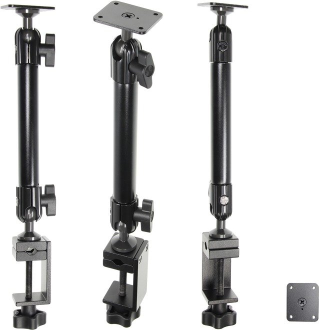 Baza montażowa o długości 345 mm, osadzona na przegubach kulowych z kwadratową podstawą o wymiarach 50x42mm z wstępnie nawierconymi otworami w systemie AMPs montowana na obejmie zaciskowej. Baza dedykowana jest do wózków widłowych. Idealnie nadaje się do montowania na niej wszelkiej elektroniki przemysłowej np. tablet czy skaner kodów kreskowych. Pasuje do prętów, słupów, krawędzi oraz rur. Klamra ma wbudowane pokrętło motylkowe, dzięki któremu można błyskawicznie zdemontować całe mocowanie. Ramię posiada szeroki zakres regulacji, który wynosi 360 stopni w poziomie, a także 210 stopni jeśli chodzi o pozycje wertykalną bądź horyzontalną. Dodatkowo ramię posiada 2 zintegrowane z nim pokrętła motylkowe, dzięki którym można w bardzo prosty i szybki sposób wyregulować mocowanie bez pomocy narzędzi.