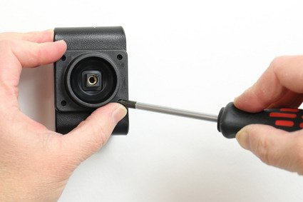 - Poluzuj śrubę znajdującą się w centralnej części uchwytu, dzięki czemu będziesz mógł odłączyć głowicę obrotową znajdującą się w tylnej części uchwytu.