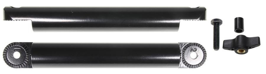 Ramię o długości całkowitej 232 mm. Na obu końcach ramienia, można zamontować podstawę montażową lub drugie ramię, które umożliwiają szeroki zakres regulacji położenia uchwytu. Zestaw zawiera 1 śrubę, 1 pokrętło motylkowe oraz 1 tulejkę.