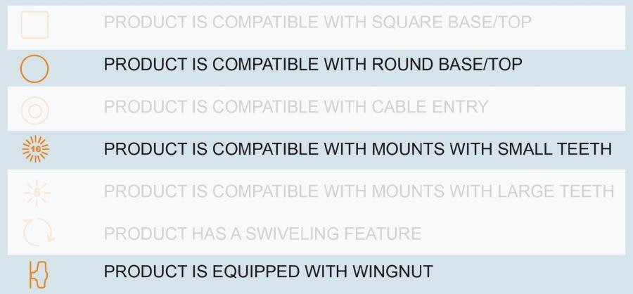 - Podstawa jest kompatybilna z ramionami Brodit, co daje możliwość tworzenia niezliczonej ilości systemów montażowych.