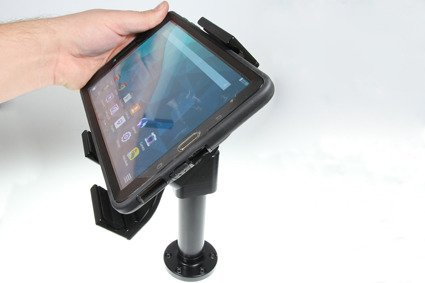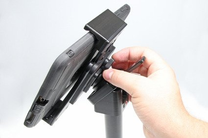 Uchwyt wyposażony jest w głowicę obrotową, która umożliwia jego regulację w różnych kierunkach w celu np. uniknięcia odbicia światła na ekranie. Możesz regulować ustawienie uchwytu o 22° w każdym kierunku. Uchwyt umożliwia jednocześnie ustawienie tabletu w pionie lub w poziomie. Zamontuj swój uchwyt do tabletu na ProClip’ie samochodowym lub na specjalnym uchwycie montażowym do zagłówka.