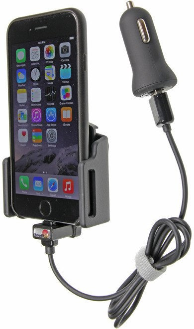 Uchwyt regulowany do Apple iPhone Xr w futerale lub obudowie o wymiarach: 62-77 mm (szer.), 2-10 mm (grubość) z wbudowanym kablem USB oraz ładowarką samochodową