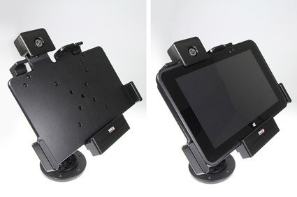 Uchwyt jest również idealnym rozwiązaniem do zastosowania w sklepach, na wystawach lub w każdym innym miejscu, w którym chcesz używać tabletu przy jednoczesnym zabezpieczeniu go przed łatwym wyjęciem z uchwytu. Jest on wyposażony w blokadę i w celu usunięcia tabletu z uchwytu trzeba użyć klucza (zestaw zawiera dwa klucze).