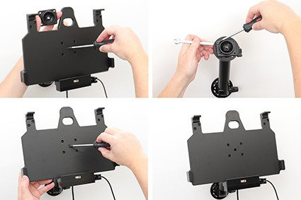 Uchwyt wyposażony jest w głowicę obrotową, która umożliwia jego regulację w różnych kierunkach w celu np. uniknięcia odbicia światła na ekranie. Możesz regulować ustawienie uchwytu o 22° w każdym kierunku. Uchwyt umożliwia jednocześnie ustawienie tabletu w pionie lub w poziomie. Zamontuj swój uchwyt do tabletu na ProClip’ie samochodowym lub na specjalnym uchwycie montażowym do zagłówka.