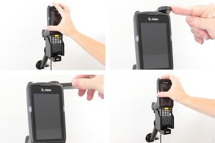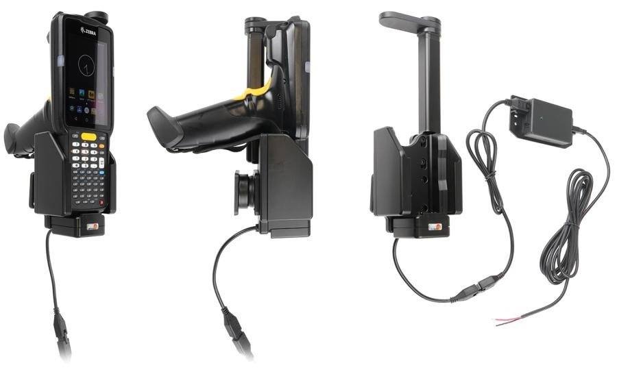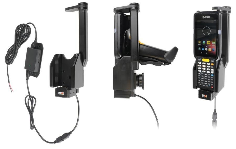 - 713040 - Brodit uchwyt aktywny do instalacji na stałe z głowicą obrotową, adapterem Molex oraz 2A ładowarką do Zebra MC3300.