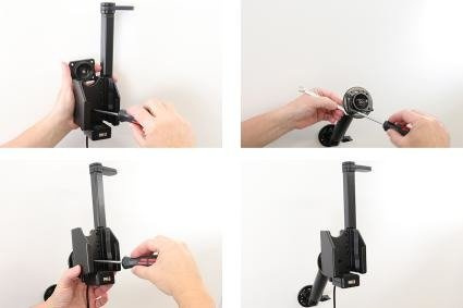 Uchwyt wyposażony jest w głowicę obrotową, która umożliwia jego regulację w różnych kierunkach w celu np. uniknięcia odbicia światła na ekranie. Możesz regulować ustawienie uchwytu o 22° w każdym kierunku. Uchwyt umożliwia jednocześnie ustawienie terminala w pionie lub w poziomie. Zamontuj swój uchwyt do smartfona na ProClip’ie samochodowym.