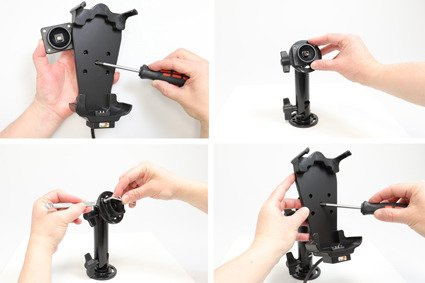 Uchwyt wyposażony jest w głowicę obrotową, która umożliwia jego regulację w różnych kierunkach w celu np. uniknięcia odbicia światła na ekranie. Możesz regulować ustawienie uchwytu o 22° w każdym kierunku. Uchwyt umożliwia jednocześnie ustawienie terminala w pionie lub w poziomie. Zamontuj swój uchwyt do smartfona na ProClip’ie samochodowym.
