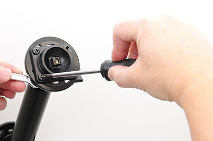 - Poluzuj śrubę znajdującą się w centralnej części uchwytu, dzięki czemu będziesz mógł odłączyć głowicę obrotową znajdującą się w tylnej części uchwytu.