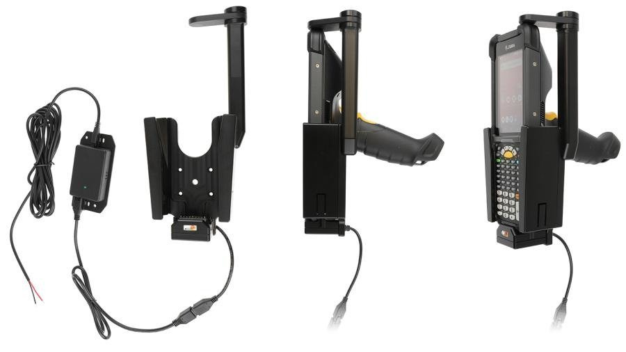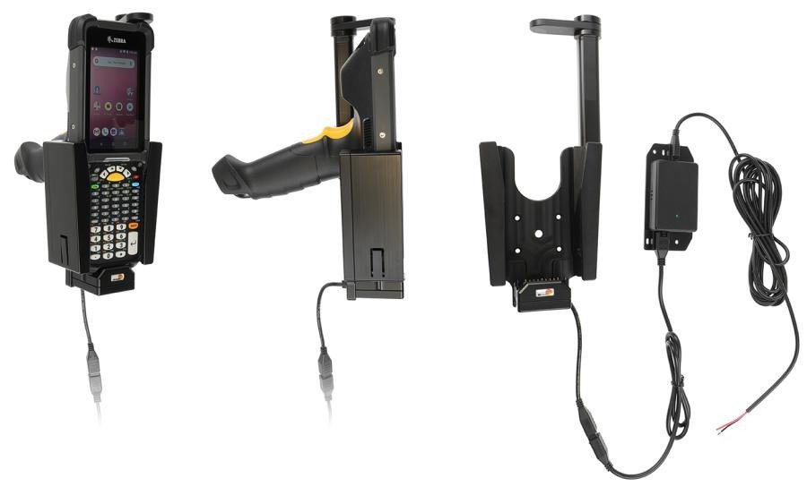 - 713135 - Brodit uchwyt aktywny do instalacji na stałe z głowicą obrotową, adapterem Molex oraz 2A ładowarką do Zebra MC9300 wraz z dodatkową górną blokadą.