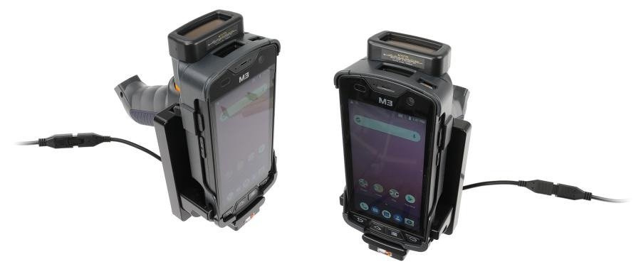 • 712157 - Uchwyt do M3 Mobile SM10/SM15 w wersji pistoletowej z ładowarką samochodową umieszczony we wzmocnionej obudowie.