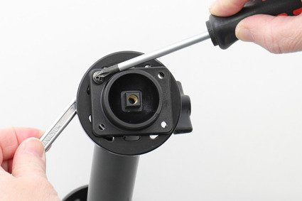 - Umieścić płytkę montażową głowicy obrotowej w żądanym położeniu. Następnie przykręć ją do wybranego miejsca śrubkami, które znajdują się w komplecie.