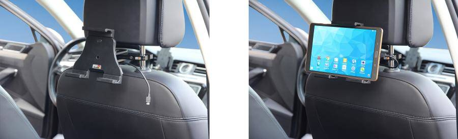 Aktywny uchwyt do instalacji na stałe ładuje Twój tablet, gdy ten znajduje się w uchwycie. Jest on przystosowany do podłączenia pod deską rozdzielczą. Efektem jest dyskretna instalacja bez wiszących, poplątanych kabli wewnątrz auta. Umieść swój tablet w aktywnym uchwycie podczas podróży samochodem, a zawsze będziesz go miał w zasięgu wzroku oraz w zasięgu swojej ręki. Bezpiecznie, komfortowo i wygodnie! Uchwyt posiada elegancki i dyskretny design, który jest idealnym uzupełnieniem dla eleganckiego wnętrza współczesnych pojazdów. Twój tablet jest solidnie zamocowany w pozycji pionowej lub jak wolisz, w pozycji poziomej.