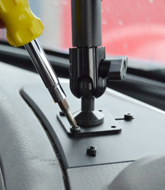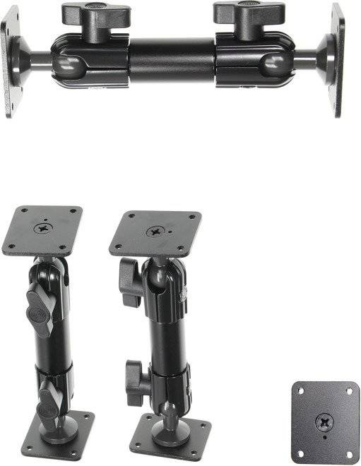 Ten system montażowy zapewnia stabilną instalację urządzenia w dowolnym pojeździe i na dowolnej płaskiej powierzchni. Idealnie nadaje się na wózki widłowe, ale także doskonale sprawdzi się w innych zastosowaniach. Bardzo łatwy do ustawienia pod dowolnym kątem i w dowolnej pozycji, dzięki głowicom kulowym, które można regulować w zakresie 210° (przód / tył) oraz obracać o 360°. Zestaw zawiera dwie kwadratowe podstawy kulowe oraz ramię średniej długości z podwójnym gniazdem.