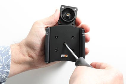 Uchwyt wyposażony jest w głowicę obrotową, która umożliwia jego regulację w różnych kierunkach w celu np. uniknięcia odbicia światła na ekranie. Możesz regulować ustawienie uchwytu o 22° w każdym kierunku. Uchwyt umożliwia jednocześnie ustawienie terminala w pionie lub w poziomie. Zamontuj swój uchwyt do terminala na ProClip’ie samochodowym.