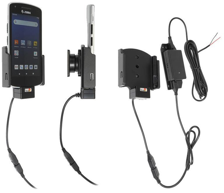 - 713253 - Brodit uchwyt aktywny do instalacji na stałe z głowicą obrotową, adapterem Molex oraz 2A ładowarką do Zebra EC55.