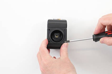 - Umieść uchwyt na płytce montażowej głowicy obrotowej w taki sposób, aby można było dokręcić śrubę znajdującą się w centralnej części uchwytu. Śrubę należy dokręcić dość mocno, a następnie lekko poluzować, aby możliwa była regulacja uchwytu.