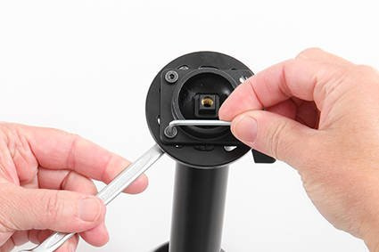 - Umieścić płytkę montażową głowicy obrotowej w żądanym położeniu. Następnie przykręć ją do wybranego miejsca śrubkami, które znajdują się w komplecie.
