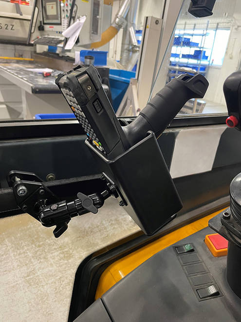 - 216226 - Uniwersalny uchwyt do skanerów kodów kreskowych / terminali logistycznych wraz z zaciskową bazą montażową.