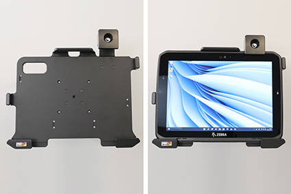 739302 - modułowy uchwyt o wzmocnionej konstrukcji do Zebra ET80 z blokadą kluczykową. Jest specjalnie dopasowany do urządzeń, które nie są umieszczone we wzmacnianej obudowie.