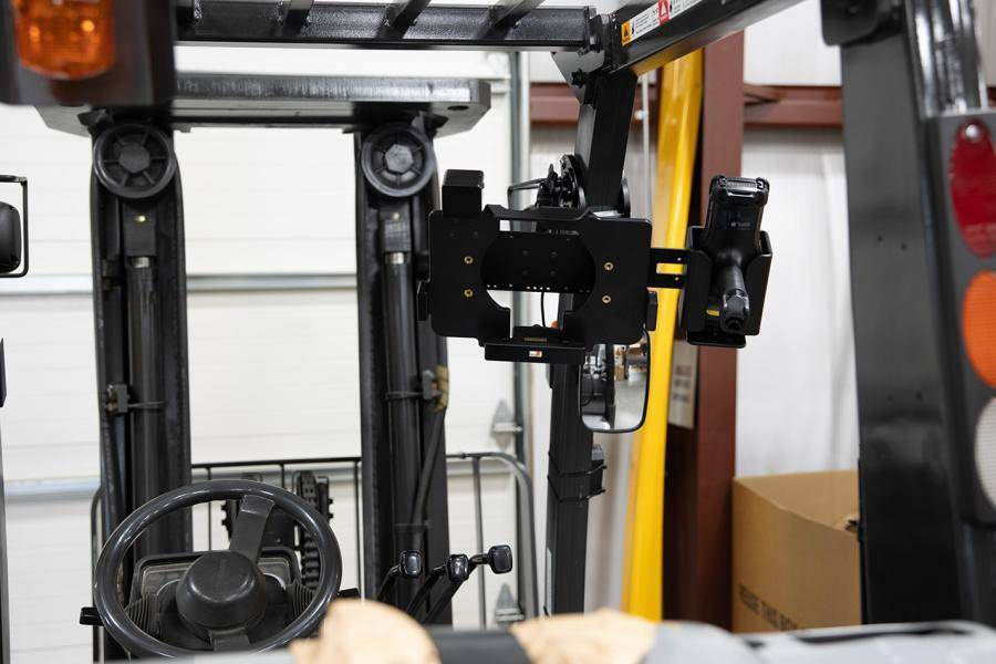Uchwyt został wykonany z bardzo mocnego i wytrzymałego tworzywa ABS. Zamontuj go do dowolnej płaskiej powierzchni, w samochodzie ciężarowym, w magazynie, na wózku widłowym itp. Uchwyt posiada w swojej tylnej części standardowe otwory AMPS i VESA. Uchwyt nie ogranicza dostępu do kamery, wszystkich przycisków funkcyjnych i portów elektronicznych.