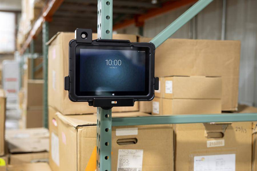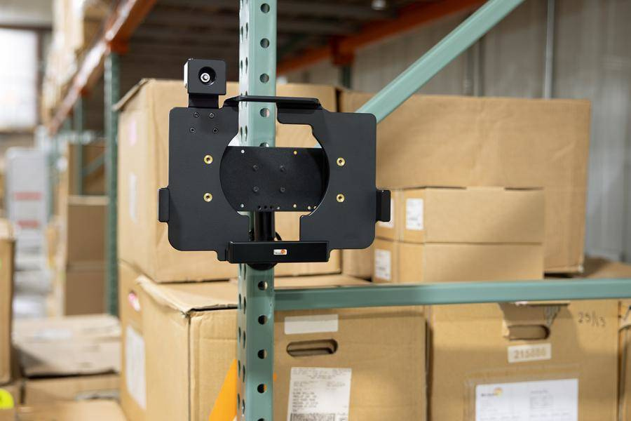 Uchwyt został wykonany z bardzo mocnego i wytrzymałego tworzywa ABS. Zamontuj go do dowolnej płaskiej powierzchni, w samochodzie ciężarowym, w magazynie, na wózku widłowym itp. Uchwyt posiada w swojej tylnej części standardowe otwory AMPS i VESA. Uchwyt nie ogranicza dostępu do kamery, wszystkich przycisków funkcyjnych i portów elektronicznych.