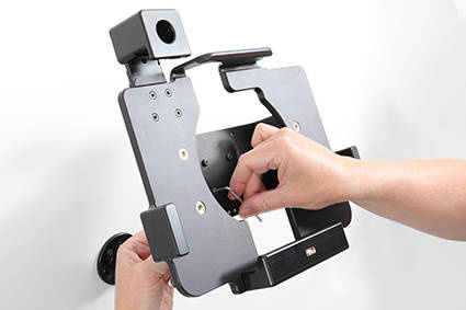 Blokada kluczykowa uniemożliwia nieautoryzowanemu wyjęciu tabletu z uchwytu. (2 kluczyki w zestawie)