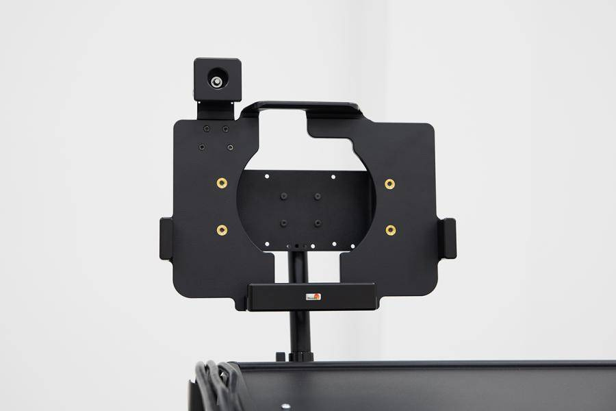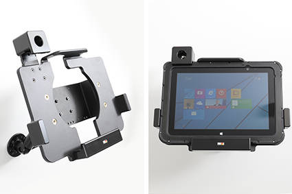 Uchwyt został wykonany z bardzo mocnego i wytrzymałego tworzywa ABS. Zamontuj go do dowolnej płaskiej powierzchni, w samochodzie ciężarowym, w magazynie, na wózku widłowym itp. Uchwyt posiada w swojej tylnej części standardowe otwory AMPS i VESA. Uchwyt nie ogranicza dostępu do kamery, wszystkich przycisków funkcyjnych i portów elektronicznych.