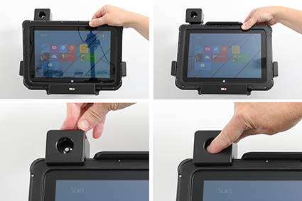 • 739266 - modułowy uchwyt o wzmocnionej konstrukcji do Zebra ET51 10.1 z blokadą kluczykową. Jest specjalnie dopasowany do urządzeń, które są wyposażone w ochronną ramkę oraz dodatkowy pasek na rękę.