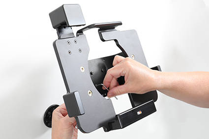 Blokada sprężynowa uniemożliwia przypadkowemu wypięciu tabletu.